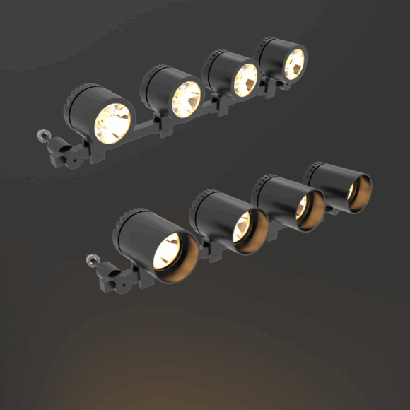 Projecteur de puissance, dédié à l’éclairage de précision et de mise en valeur de vitrines :